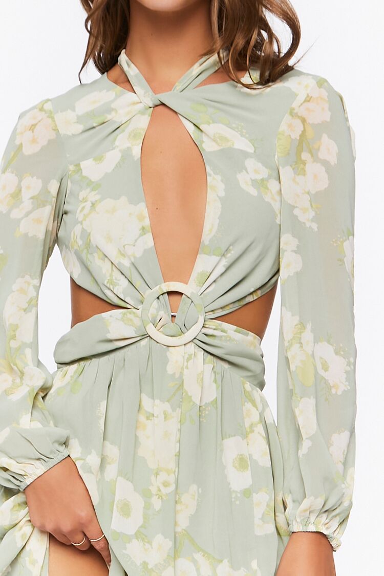 Floral Halter Cutout Maxi Dress